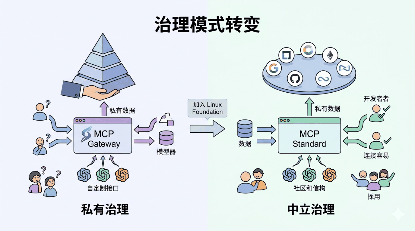 自去年 11 月 Anthropic 发布 MCP 以来,该协议以其极简的架构和极强的扩展性迅速占领了开发者心智。然而,作为一个连接私有数据与 AI 模型的桥梁,其治理模式的透明度和中立性一直是社区关注的焦点。
