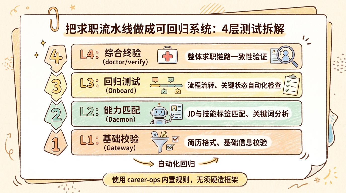 这篇我不讲概念,直接拿 career-ops 这类基于 Claude Code 的求职流水线工具,拆一套我自己会落地的自动化测试方案。目标很直接:把“能跑”升级成“可回归、可验证、可长期维护”。